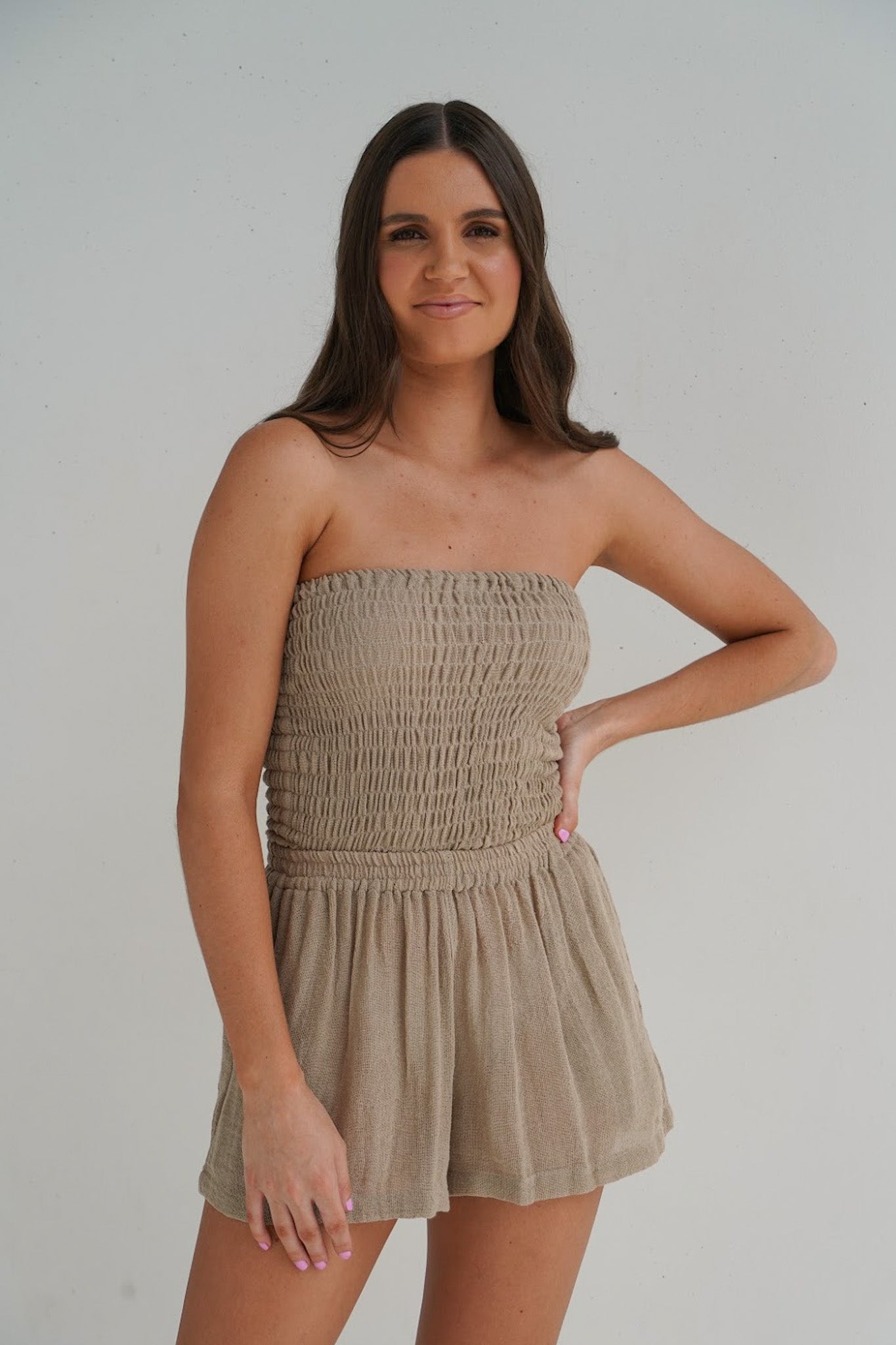Our model Chelsea is wearing a size S/M.